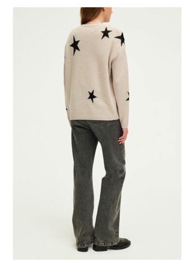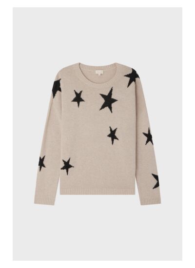 Pull à col rond avec des étoiles contrastées dans un mélange contenant de la laine et du cachemire.