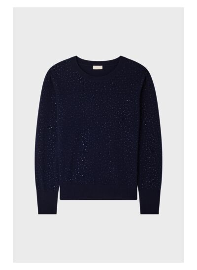 Élevez votre garde-robe avec ce pull en laine 100% qui allie confort et élégance. Sa texture douce et chaude vous enveloppe d'une sensation de bien-être, idéale pour les journées fraîches. Les mini-strass délicatement disposés sur toute la surface ajoutent une touche de brillance subtile, parfait pour illuminer vos tenues, que ce soit au bureau ou lors d'une sortie entre amis.