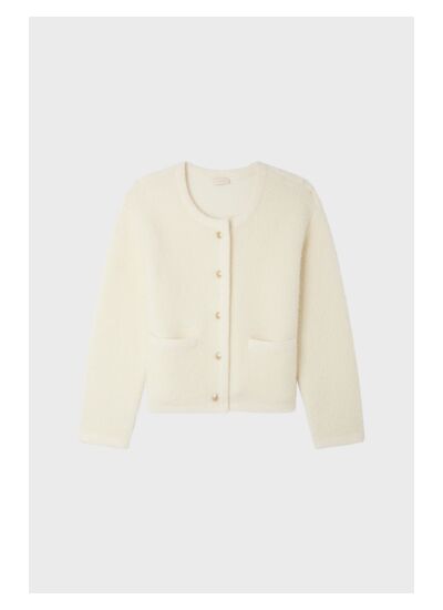 Gilet écru en bouclette avec des boutons dorés gravés dans un esprit veste. En laine mélangée.