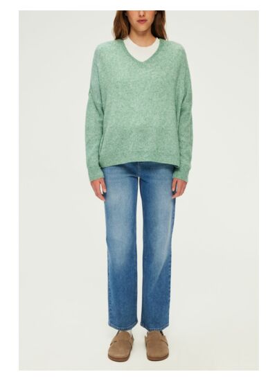 Pull col V oversize dans un doux mélange de laine à l'aspect chiné. Fendu dans le bas du dos pour un tomber féminin.