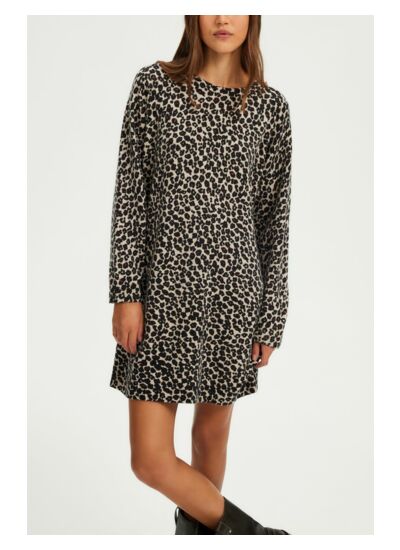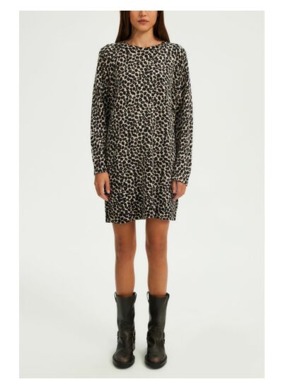 Robe courte imprimé léopard en 100% laine pour un porter à la fois féminin et casual.