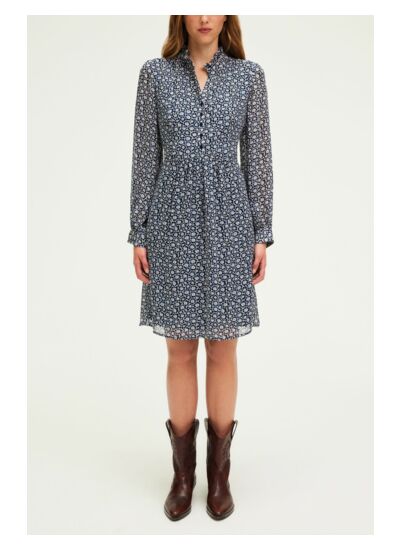 Robe courte en crêpe avec un imprimé floral bicolore.