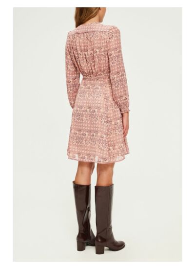 Robe courte en mousseline avec un imprimé floral et une pointe de lurex. A porter l'hiver comme à la mi-saison. Esprit bohème chic.