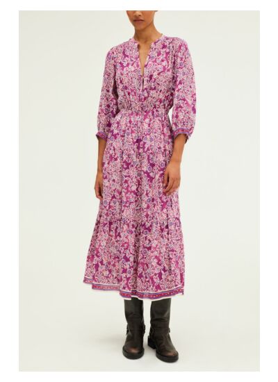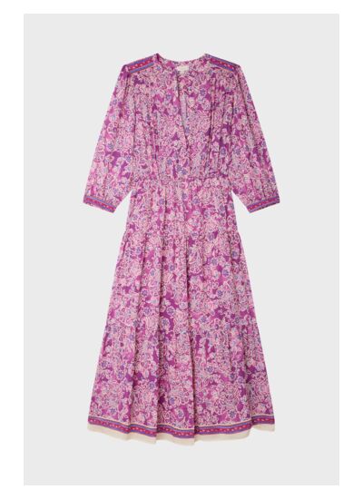 Robe longue et fluide à fleurs dans une matière au toucher soyeux.