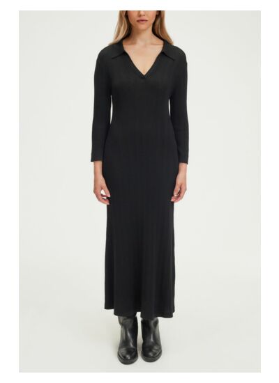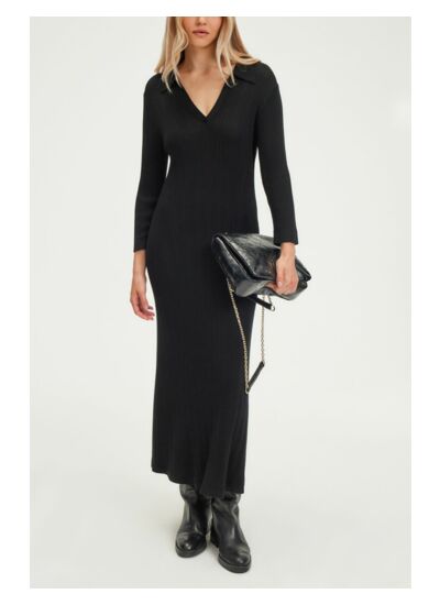 Robe ajustée et cintrée en 100% laine fine à côtes. A porter casual ou sophistiquée avec des accessoires dorés.