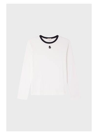 T-shirt à manches longues et col rond. Col et logo brodé dans un coloris contrasté. 100% coton.