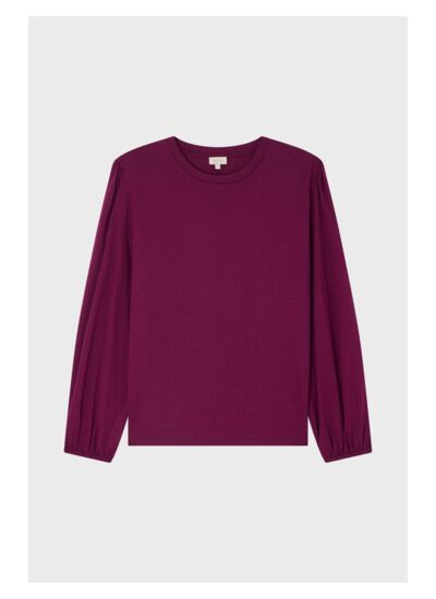 T-shirt à col rond et manches longues dans un doux mélange de coton et lyocell. Coloris lipstick pour dynamiser du noir ou du marine.