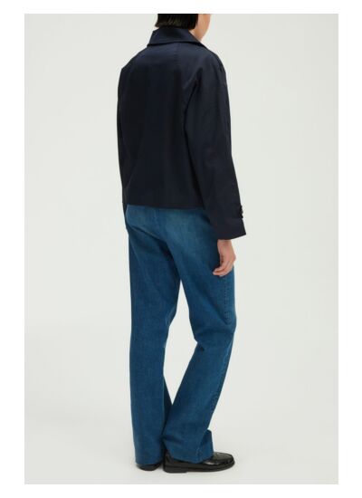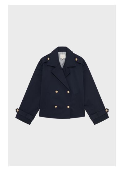 Trench court en coton à boutonnage croisé. Des boutons dorés gravés apportent une subtile touche de sophistication.