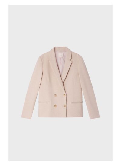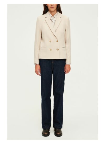 Blazer écru au boutonnage croisé en laine mélangée. A porter chic ou casual.