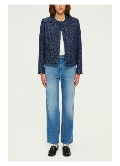 Veste en tweed effet denim avec une pointe de lurex. Look chic et rock.