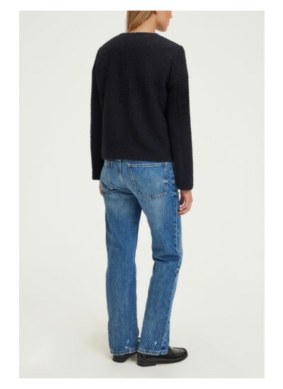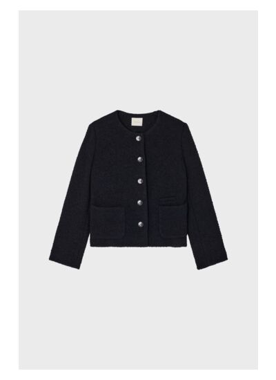 Veste en tweed et lurex, à porter classique ou décalée avec un pantalon en cuir ou un jean.