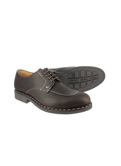 Derby pour Homme type chasse en cuir marron. Montage cousu Norvégien.