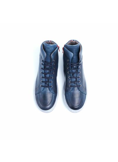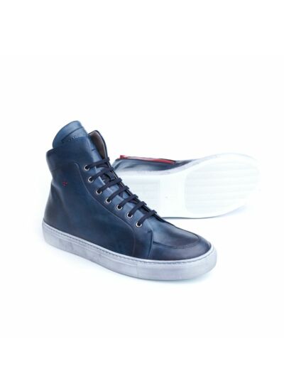 Basket haute pour homme - Cuir navy patiné - Cousu Bolognais