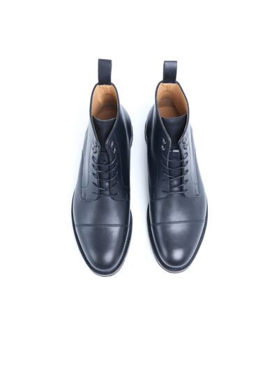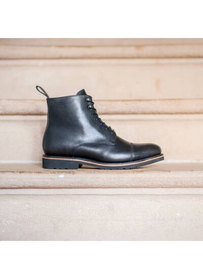 Boots à lacets pour homme en Cuir noir et semelle gomme. Montage Cousu Goodyear.