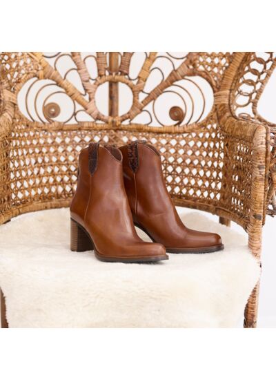 Bottines pour femme. Cuir lisse Gold. Détails animaliers. Zip arrière. Semelle élastomère. Talons 7cm