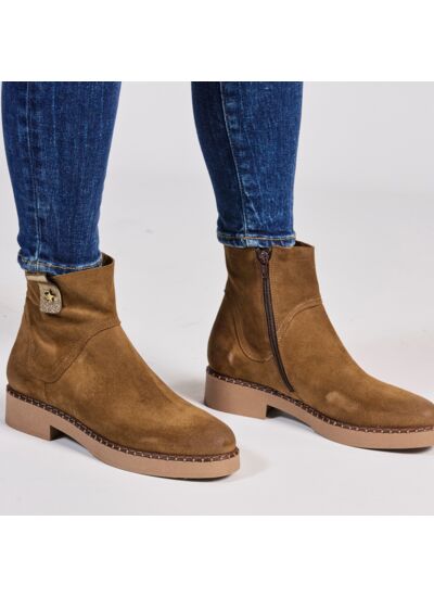 boots femme en cuir fantaisie effet antilope. Intérieur cuir. Fermeture éclaire sur le côté. Semelle gomme.