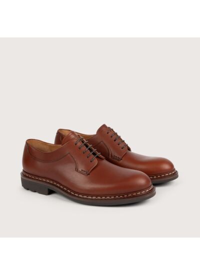 Le modèle Cèdre est un derby classique, surpiqué au col, et à bout rond. Coupé dans un cuir imperméable tanné naturellement, il est monté sur une semelle tout-terrain brevetée, selon les préceptes du cousu Norvégien.
