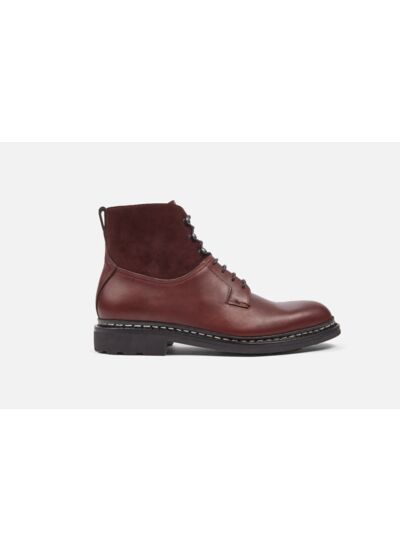Boots Femme à lacets en cuir Suportlo merlot et Hydrovelours bordeaux réalisées en cousu norvégien sur une semelle Ravel en gomme. Nouveauté de cette saison, ce modèle bi-matière s'orne de crochets esprit montagne, il est réalisé en cuir Suportlo merlot, connu pour sa résistance et sa souplesse, et son col en Hydrovelours bordeaux, imperméable. Montées sur une semelle gomme et dotées de soufflets d'étanchéité, ces chaussures sont conçues pour convenir à tous les usages. A porter au quotidien, de façon casual ou plus élégante.