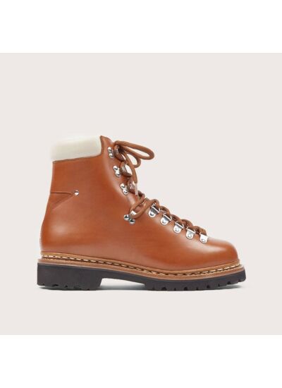 Boots femme en cuir Purecalf et Nappa gold réalisées en Cousu Norvégien sur une semelle Vibram en caoutchouc. D'inspiration montagne, cette boots montante est construite d'une seule pièce, avec un col matelassé en cuir d'agneau, elle est intégralement fourrée mouton. Le caractère authentique de sa tige et ses lacets bi-colores s'allient à la modernité de ses crochets et de ses passe-lacets en nickel. Sa semelle Vibram, légère et résistante, lui apporte une touche supplémentaire de sophistication sans compromis sur la technique. Son caoutchouc spécifique résiste à l’abrasion et assure une bonne adhérence. Ces caractéristiques et son cuir Purecalf souple, en font le compagnon idéal de vos promenades en pleine nature.