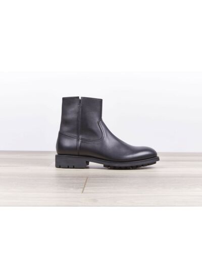 Boots Manioc en cuir Anilcalf noir sur semelle commando en gomme. Cette nouveauté se pare d’un cuir de veau pleine fleur qui lui donne un aspect souple et élégant. Ce modèle d’inspiration motard avec son zip et son ouverture d'aisance, est monté sur une semelle Commando au profil affirmé. Dotée d'un talon avec une cale en micro EVA pour plus de confort et de légerté, cette semelle permet une utilisation aussi bien outdoor qu’urbaine. Réalisé en cousu Goodyear.