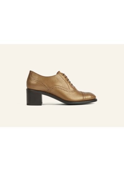 Quelles sont les caractéristiques principales des richelieus MORINE ? Ces richelieus femme allient élégance et intemporalité grâce à leurs bords anglais et bouts perforés fleuris. Le cuir de chèvre Gobi, reconnu pour son grain prononcé et sa brillance, assure une finition sophistiquée. La semelle en cuir, équipée d’un patin en gomme, garantit confort et durabilité, tandis que le talon droit ajoute une touche féminine sans sacrifier la stabilité.