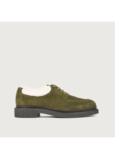 Un derby femme en veau Hydrovelours, à la fois souple, imperméable et d’un grand confort. Sa semelle en caoutchouc légère en fait un compagnon idéal pour toutes vos escapades urbaines. Son col en Mouton lui apporte une touche hivernale élégante.