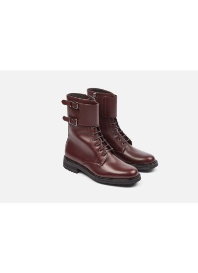 Une réinterprétation contemporaine de la boots mi-mollet, portée par une allure affirmée où l’esprit rock dialogue avec l’exigence du détail. Réalisé en cousu Goodyear et monté sur une semelle Commando en gomme, ce modèle conjugue caractère et technicité. Sa tige structurée est soulignée par une manchette à double boucle qui vient épouser la cheville avec justesse. Doté d’un zip intérieur discret, il se chausse d’un geste et s’impose comme une pièce forte, pensée pour insuffler une touche d’audace à une silhouette épurée. Réalisé en Alsace, France. Conçu en Purecalf : un cuir de veau, coloris Merlot. Cousu Goodyear : confère robustesse, confort, souplesse et permet le ressemelage. Semelle Commando : en gomme, au caractère affirmé. Forme Arsenal : une forme au bout carré muflé et au chaussant très généreux.