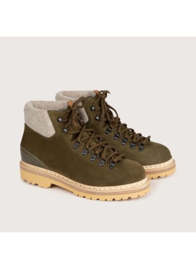 - Conçue en Nubuck : un cuir de veau légèrement grainé et velouté, coloris Kaki.