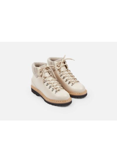 Boots homme en cuir Purecalf Ivoire et laine réalisées en Cousu Norvégien sur une semelle Vibram en caoutchouc. Inspiré de nos premières chaussures de montagne, ce modèle est construit d'une seule pièce, avec un col matelassé en laine. Il allie habilement le caractère authentique de sa tige à la modernité de ses crochets et de ses passe-lacets en nickel. Sa semelle Vibram, légère et résistante, lui apporte une touche supplémentaire de sophistication sans compromis sur la technique. Son caoutchouc spécifique résiste à l’abrasion et assure une bonne adhérence. Ces caractéristiques et son cuir Purecalf, souple et confortable, en font le compagnon idéal de vos promenades urbaines comme en pleine nature.
