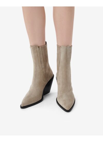 Quel est l’entretien recommandé pour ces bottines en cuir suède ? Pour préserver leur aspect et leur texture, il est conseillé d’utiliser un imperméabilisant spécifique cuir suède et de nettoyer délicatement avec une brosse adaptée. Évitez l’eau directe pour conserver la qualité du cuir.
