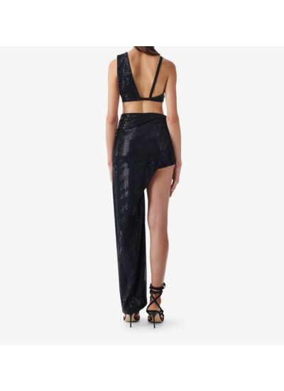 Consultez le guide de taille IroBrassière à paillettes LEVANZO. Coupe asymétrique à une épaule avec une large bretelle.