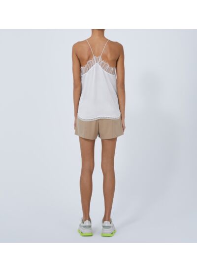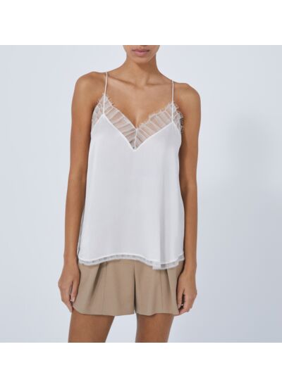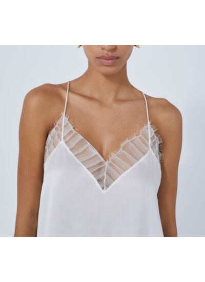 Consultez le guide de taille IroCaraco en soie et dentelle BERWYN. Fines bretelles et détails de dentelle sur le décolleté.