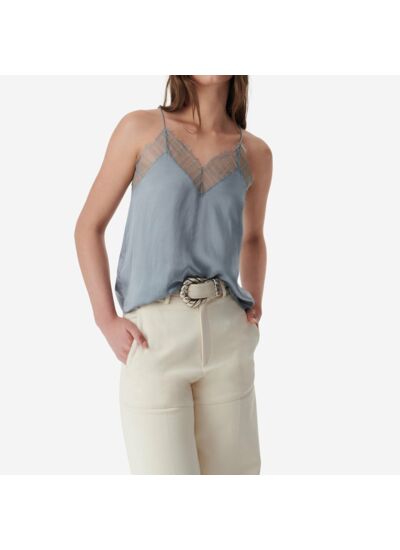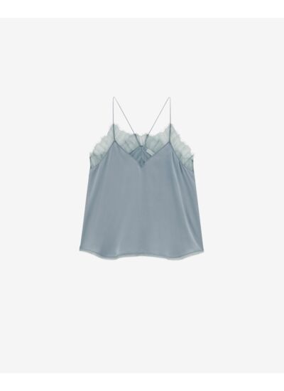 Ce caraco est-il adapté aux peaux sensibles ? Oui, sa composition 100% soie garantit une douceur naturelle et une excellente respirabilité, idéale pour les peaux sensibles ou réactives. Comment entretenir ce caraco en soie ? Nous recommandons un lavage à la main à l'eau froide ou un nettoyage à sec pour préserver la finesse de la soie et la délicatesse de la dentelle. Ce caraco convient-il pour une tenue de soirée ? Absolument, son aspect fluide et aérien associé aux détails en dentelle au décolleté en fait une pièce élégante et raffinée, parfaite pour une soirée ou un look chic. Quelle est la coupe de ce débardeur ? Le caraco présente une coupe fluide et légère avec des fines bretelles, offrant un tombé naturel qui sublime la silhouette sans serrer. Ce modèle est-il facile à associer dans une garde-robe ? Oui, sa couleur bleu profond et son design épuré en font une pièce polyvalente, idéale à porter seule ou sous une veste pour un style sophistiqué et moderne.