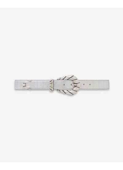 Comment se ferme cette ceinture ? Elle se ferme par une boucle argentée avec des détails sculptés, alliant fonctionnalité et design raffiné.