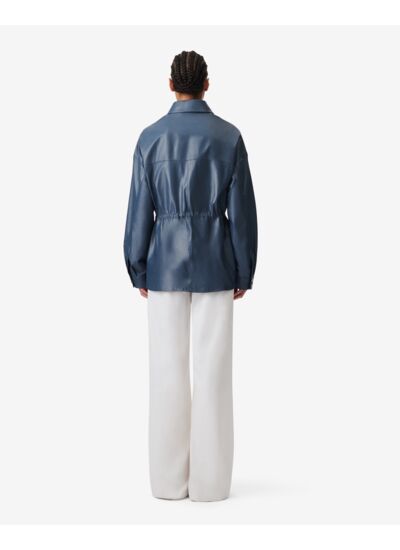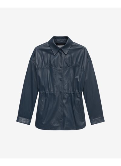 Comment est la coupe de cette chemise en cuir ? Elle présente une coupe décontractée avec un col classique, offrant un équilibre parfait entre élégance et confort pour un style moderne et facile à porter.