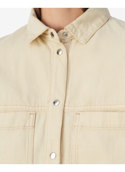 Comment se ferme cette surchemise ? Elle se ferme facilement grâce à des boutons pression, garantissant un style pratique et moderne tout en facilitant l’enfilage.