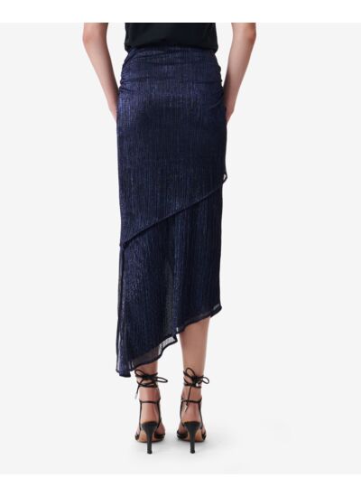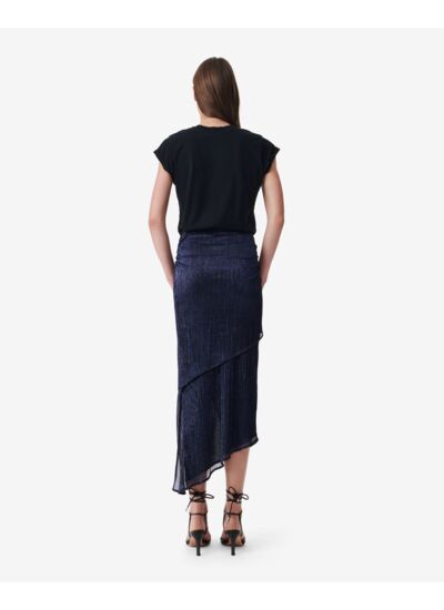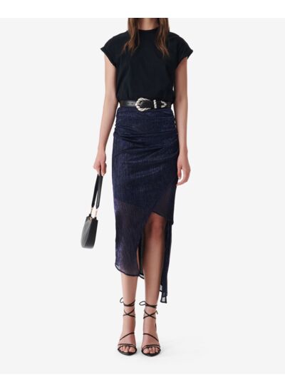 Cette jupe asymétrique est-elle adaptée à toutes les morphologies ? Oui, sa taille haute et sa coupe midi avec plis à la taille mettent en valeur la silhouette en affinant la taille et en allongeant les jambes, convenant à de nombreuses morphologies. De quelle matière est composée la jupe et quel entretien nécessite-t-elle ? La jupe est en 100% polyester, une matière résistante et facile d’entretien, lavable en machine à basse température pour préserver son effet brillant. Quelle occasion privilégier pour porter cette jupe ? Son effet brillant et sa coupe élégante la rendent idéale pour des sorties habillées, des événements professionnels ou des soirées, apportant une touche sophistiquée à votre tenue. Comment choisir la taille de cette jupe ? La jupe taille normalement, nous recommandons de prendre votre taille habituelle pour un ajustement parfait à la taille haute. Cette jupe est-elle fabriquée en Europe ? Non, elle est fabriquée en Chine, garantissant un savoir-faire maîtrisé et une qualité conforme aux standards de la marque Iro.
