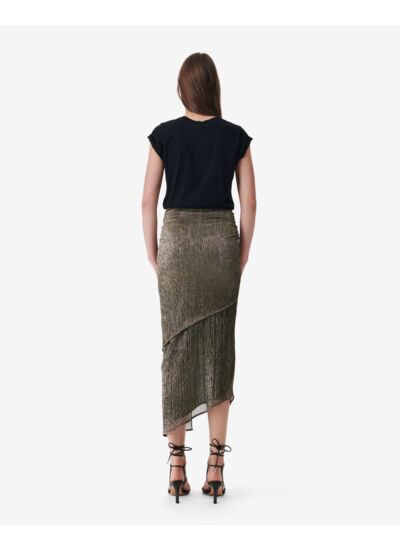 La jupe taille normalement. Pour un ajustement optimal, référez-vous au guide des tailles de la marque Iro, en tenant compte de votre tour de taille, car la taille haute accentue la silhouette.