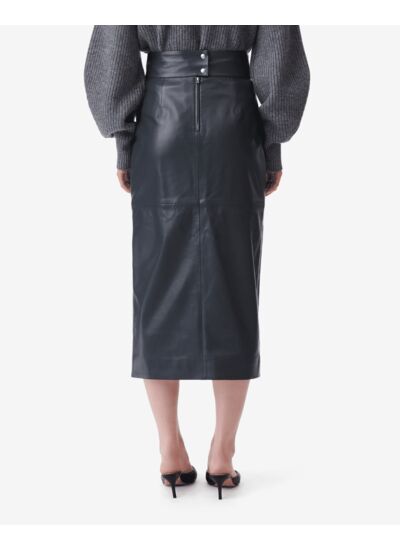 Quelle est la coupe de la jupe Magali en cuir ? La jupe Magali présente une coupe midi taille haute avec une longue fente sur le devant, offrant une silhouette élégante et moderne tout en assurant un confort optimal.