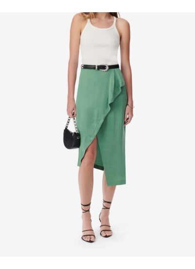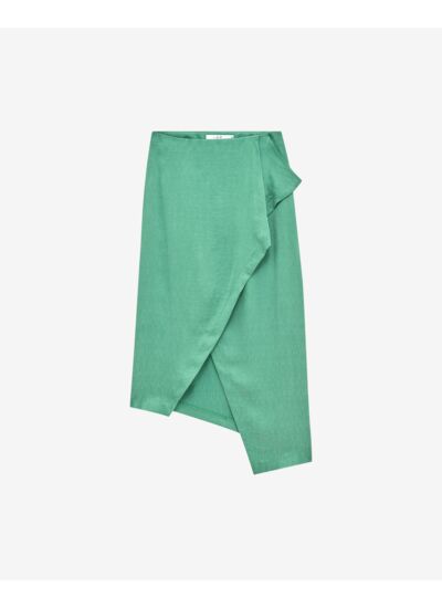 Comment se distingue le design de cette jupe ? La jupe midi Simal se caractérise par un effet drapé sur le côté qui apporte une touche d’élégance et de mouvement, sublimant la silhouette avec une coupe moderne et raffinée.