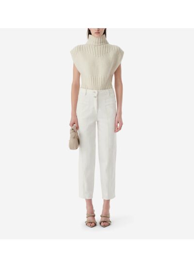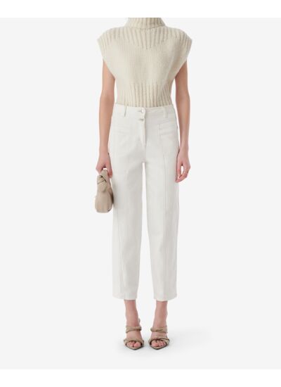 Le pantalon Akiko présente une coupe carotte, qui allie style et aisance, avec des coutures à l’avant et à l’arrière pour une silhouette structurée et moderne.
