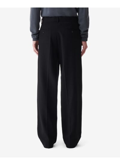 Ce pantalon en laine est-il adapté aux saisons froides ? Oui, grâce à sa composition majoritaire en laine vierge, ce pantalon large offre chaleur et confort tout en restant respirant, idéal pour l’automne et l’hiver.