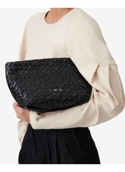Quelles sont les caractéristiques principales de la pochette en cuir Neobel Woven ? Cette pochette est conçue en cuir d'agneau 100% véritable, tressé pour un effet texturé unique. Elle dispose d’un logo IRO estampillé en argent et d’une anse amovible, offrant polyvalence et élégance. Fabriquée en Inde, elle allie savoir-faire artisanal et qualité premium.