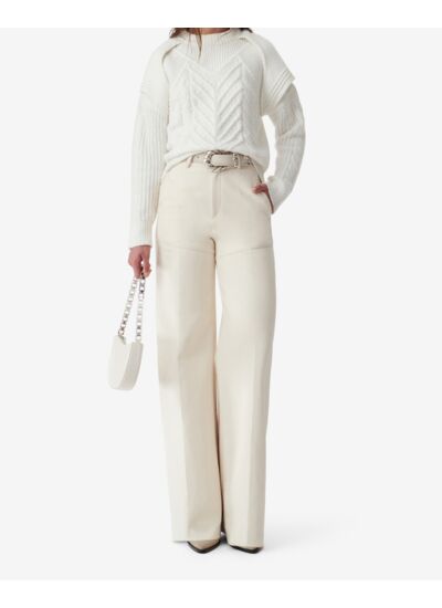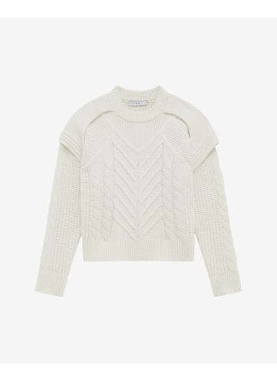 Quelle coupe et quel style propose ce pull ? Le col rond et le jeu de superposition aux épaules apportent une touche moderne et élégante, tandis que les torsades ajoutent du relief et du caractère à ce pull facile à associer avec un jean ou une jupe.