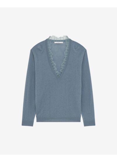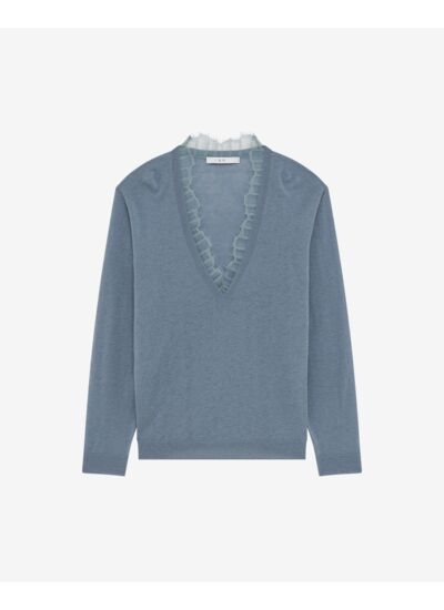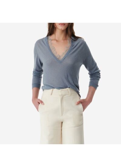 Ce pull en maille fine convient-il aux peaux sensibles ? Sa composition en laine, soie et cachemire garantit douceur et confort, idéale pour les peaux sensibles sans provoquer d’irritation. Comment entretenir ce pull en dentelle ? Pour préserver la qualité des fibres et la délicatesse de la dentelle, privilégiez un lavage à la main à l’eau froide ou un nettoyage à sec. Le séchage à plat est recommandé pour éviter toute déformation. Quelle coupe et style offre ce pull ? Sa coupe droite et son col en V apportent une silhouette élégante et moderne, tandis que les finitions en dentelle ton sur ton ajoutent une touche raffinée et féminine. Ce pull est-il adapté aux saisons froides ? Grâce à son mélange de laine, soie et cachemire, il offre chaleur et légèreté, parfait pour les journées fraîches sans surchauffer. Ce modèle est-il fidèle à la taille habituelle ? La coupe droite respecte les standards, nous conseillons de prendre votre taille habituelle pour un ajustement confortable et élégant.