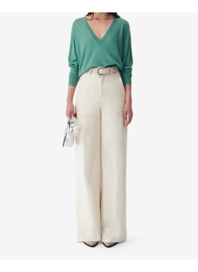 Ce pull col V Leya est-il adapté aux peaux sensibles ? Ce modèle associe 55% soie et 45% laine mérinos, des matières naturelles reconnues pour leur douceur et leur confort, idéales pour les peaux sensibles. Comment entretenir ce pull en soie et laine mérinos ? Il est recommandé de le laver à la main à l'eau froide ou en cycle délicat, avec un détergent spécial laine et soie, puis de le faire sécher à plat pour préserver sa forme et sa qualité. Quelle coupe offre ce pull manches longues ? Le pull Leya présente une coupe ajustée avec un col en V élégant, sublimée par des détails de transparence sur les épaules qui apportent une touche moderne et féminine. Ce pull convient-il pour un usage quotidien ou des occasions spéciales ? Grâce à ses matières nobles et son design raffiné, il s’adapte parfaitement à un look chic au quotidien comme à des événements plus habillés. Où est fabriqué ce pull et quelle garantie de qualité offre la marque Iro ? Fabriqué en Chine selon les standards exigeants d’Iro, ce pull garantit un savoir-faire soigné et une finition haut de gamme fidèle à l’esprit de la marque.