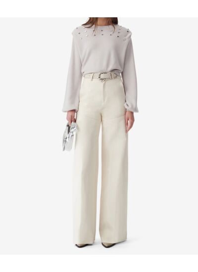 Quelle est la coupe du pull Fayruz ? Ce modèle présente une coupe oversize qui offre une silhouette décontractée et moderne, idéale pour un style casual tout en restant élégant grâce aux détails soignés comme les studs métalliques.