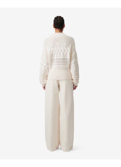 Ce pull est-il facile à associer avec d’autres vêtements ? Sa couleur écrue et son design sobre permettent de le porter aussi bien avec un jean casual qu’avec un pantalon plus habillé, offrant une grande polyvalence dans votre garde-robe.
