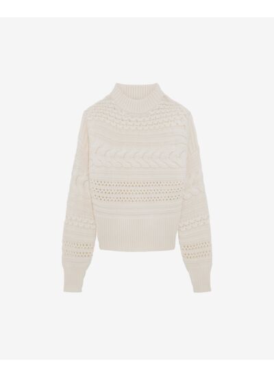 Quelle coupe et quel style propose ce pull ? Ce modèle ajusté à la taille avec un col montant et des torsades apporte une silhouette élégante et moderne, parfaite pour un look chic et confortable au quotidien.