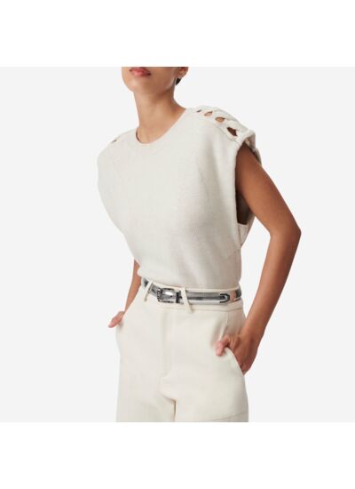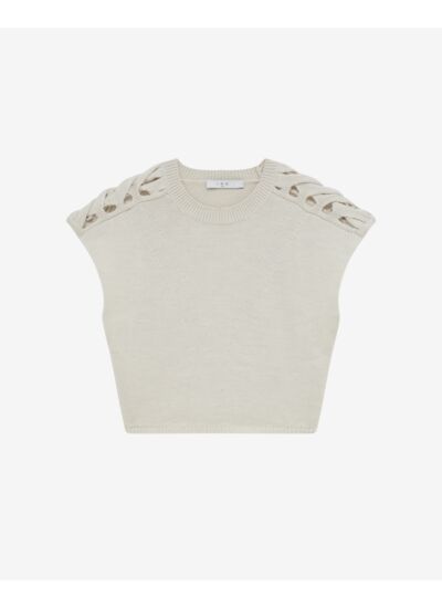 Ce pull sans manches est-il chaud malgré l'absence de manches ? Oui, grâce à sa composition 100% laine de mérinos, ce pull offre une excellente isolation thermique tout en restant léger, idéal pour les superpositions ou les journées fraîches. Comment entretenir ce pull en laine de mérinos ? Il est recommandé de laver ce pull à la main ou en cycle laine à basse température, sans essorage intensif, et de le faire sécher à plat pour préserver la forme et la qualité de la laine. Quelle coupe propose ce pull sans manches ? Le pull Amaya présente une coupe ajustée qui souligne la silhouette tout en offrant confort et liberté de mouvement, avec un col rond classique et des détails tressés élégants sur les épaules. Ce pull convient-il à un style formel ou décontracté ? Sa finition soignée et son design épuré permettent de le porter aussi bien en tenue casual qu’en layering sous une veste pour un look plus sophistiqué. Où est fabriqué ce pull et quelle est la qualité de sa laine ? Ce pull est fabriqué en Chine avec une laine de mérinos 100% naturelle, reconnue pour sa douceur, sa résistance et ses propriétés thermorégulatrices.
